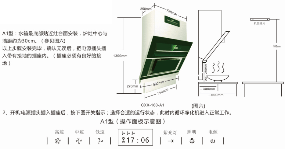 6、主機安裝完畢,后接上電源插座,試運行機器,確認機器的各功能是否正常。